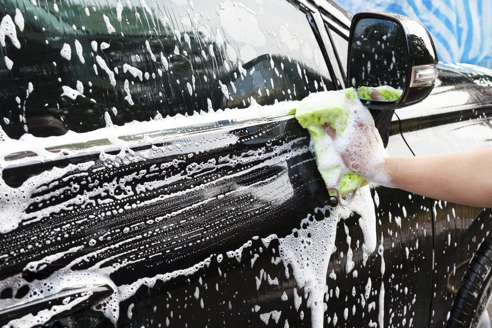Hand wash using pH-balanced automotive shampoo and microfiber mitts to prevent swirl marks.
